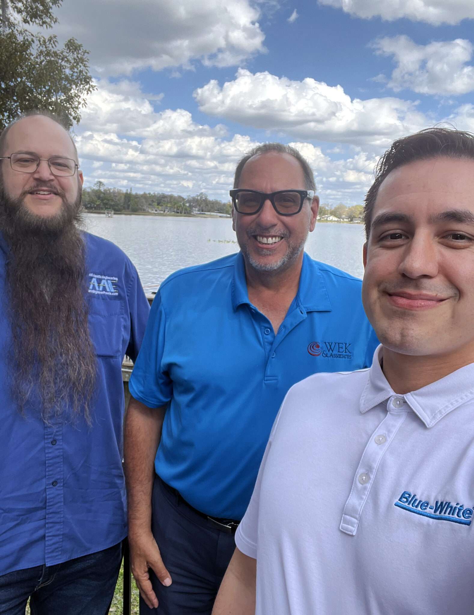 Blue-WhiteMarcus Gonzalez (à l'extrême droite), de ®, est arrivé en Floride avant le salon Everything Under the Sun pour rendre visite à des clients importants et parler billards ! On aperçoit ici Nicholas Eckhardt (à droite), propriétaire de All Aquatics Ingénieur, et Phil Marguriet (CTR), directeur régional chez WEK. Merci pour votre accueil !
